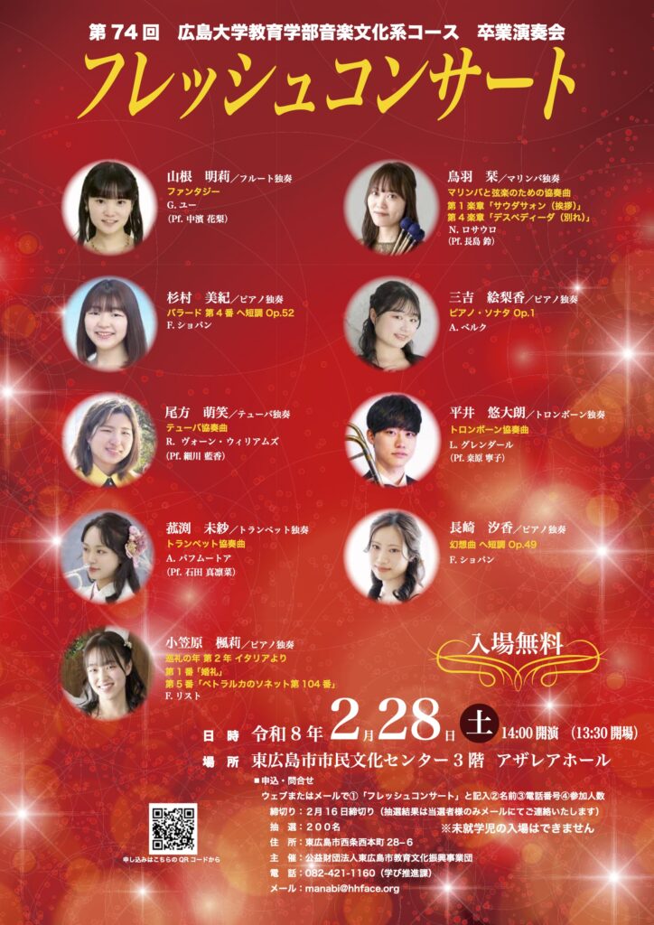 卒業演奏会(フレッシュコンサート)を開催します。令和7年度卒業生からオーディションで選ばれたメンバーが演奏をします。どうぞ会場で声援を送ってください!